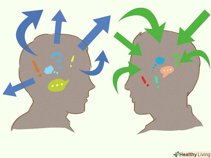 Визначте, ви —Эктраверт , Інтроверт або амбіверт, щоб керувати своїм соціальним життям належним чином. екстраверти заряджаються енергією від присутності інших людей, в той час як інтроверти відновлюють сили, проводячи час на самоті. Амбіверти знаходяться десь посередині, тому вони часто відчувають себе комфортно як з іншими людьми, так і поодинці. Знаючи, до якої групи ви належите, ви зможете обчислити соціальні ситуації, які найкраще вам підходять. Найпростіший спосіб дізнатися, чи є ви екстравертом, інтровертом або амбівертом — це пройти тест в Інтернеті. [6]- Як правило, екстраверти зосереджені на зовнішніх аспектах, а інтроверти — на внутрішніх.