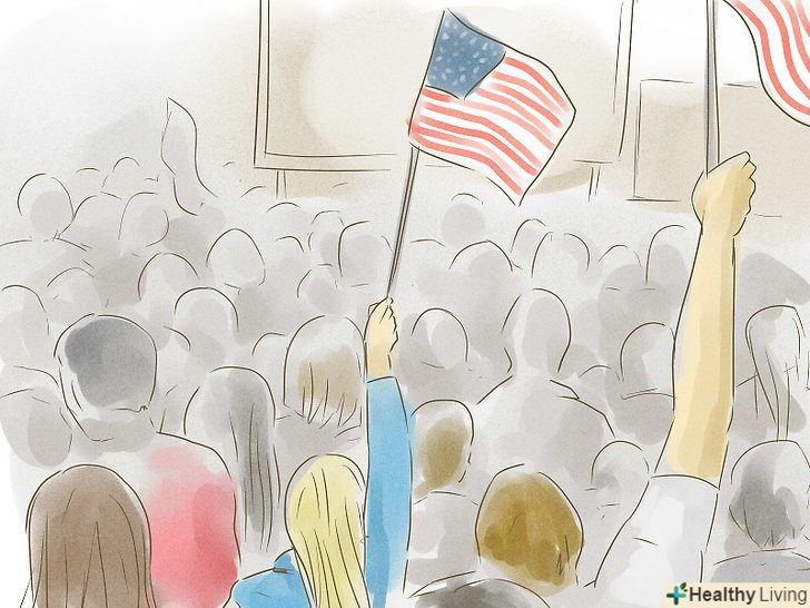 Ведіть активне громадянське життя. США засновані на принципах представницької демократії. Чим більше людей бере участь у житті держави, голосуючи, тим більше уряд представлятиме націю. Тому всі американці, які мають можливість голосувати, повинні обов'язково це зробити. Однак, цього не достатньо для активної участі в житті країни. Наприклад, громадянин може приєднатися до політичної партії, чиї переконання близькі до його власних і працює над поширенням послання. Або, якщо він особливо стурбований проблемами в суспільстві, може заснувати свою власну партію. Нижче наведено кілька шляхів, які ви хочете взяти до уваги, щоб стати активним учасником американської демократії.- Участь у політичному круглому столі або обговоренні