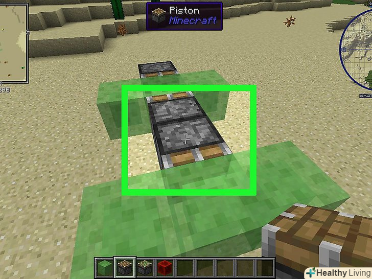 Поставте липкий поршень.зламайте два блоки, які з'єднують два ряди блоків, а замість них поставте два липких поршня. Можливо, вам доведеться зламати блок слизу в одному з рядів, поставити другий липкий поршень, а потім знову встановити блок слизу.