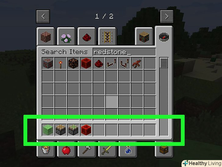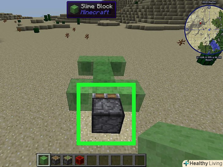 Додайте необхідні предмети з інвентарю на панель швидкого доступу. Такими предметами є:- Блоки слизу;
