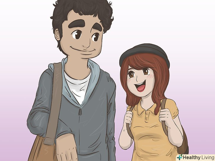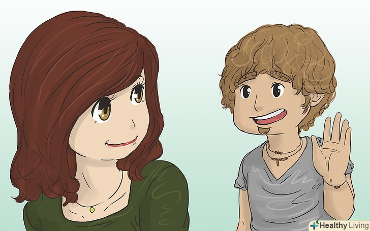 Привітайтеся з нею. побачивши її вранці або по дорозі в школу, обов'язково привітайтеся з нею. Швидше за все, ви викличете до себе інтерес, і дівчина захоче більше дізнатися про вас і поговорити з вами. Вона неодмінно помітить вас. [2]- Якщо ви ніколи раніше не розмовляли з цією дівчиною, не згадуйте її ім'я, коли будете вітатися з нею. Вона може злякатися, так як зовсім не знає вас. Особливо варто бути обережним, якщо ви вчитеся в школі, де навчається багато учнів. Не варто збирати інформацію про дівчину, так як Ваші дії можуть бути розцінені як переслідування.
