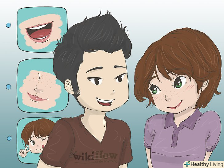 Змусити її сміятися. у старій приказці говориться: «найкоротший шлях до серця жінки — це змусити її сміятися». Звичайно, якщо ви не дуже добре знаєте дівчину, вам буде складно жартувати, так як ви не можете бути точно впевнені в тому, що її розсмішить. Тим не менш, ви можете сказати щось смішне, пов'язане з вашим шкільним життям. [12]- Можете розповісти про те, як ваш учитель смішно вимовляє якесь слово, або придумує слова. Наприклад, можна сказати: «Наш учитель англійської мови на ходу придумує слова. Це так весело!»