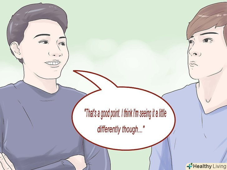 Вчіться ввічливо висловлювати незгоду. завжди висловлюйте незгоду тактовно і спокійно. Поважайте точку зору співрозмовника. Не ображайте чужі погляди, навіть якщо вони не збігаються з вашими. [6]- Намагайтеся виявити точки дотику і тільки потім висловлювати незгоду. Починайте з похвали і потім висловлюйте своє зауваження. Навіть проста фраза: "відмінна думка. Правда, я з тобою не в усьому згоден...",- дозволить м'яко висловити розбіжність у думках.