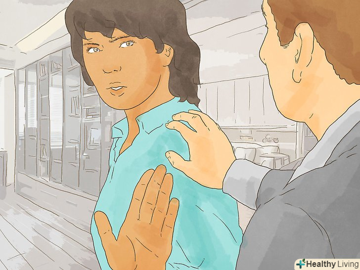 Зверніться за допомогою, якщо людина проявляє жорстокість. не взаємодійте з іншою людиною і не піднімайте на нього руку, якщо тільки ви не будете змушені оборонятися. Завжди спочатку намагайтеся піти від ситуації. Якщо у вас не виходить і ви перебуваєте в громадському місці, спробуйте привернути увагу кого-небудь з оточуючих. Якщо ви знаходитесь вдома і конфлікт обертається рукоприкладством, спробуйте піти або замкнутися в кімнаті. Негайно викличте поліцію. [9]- Якщо ви перебуваєте в громадському місці, наприклад, в магазині або парку, пошукайте людей, які могли б вам допомогти. Залучіть їх увагу шумом або криками про допомогу.