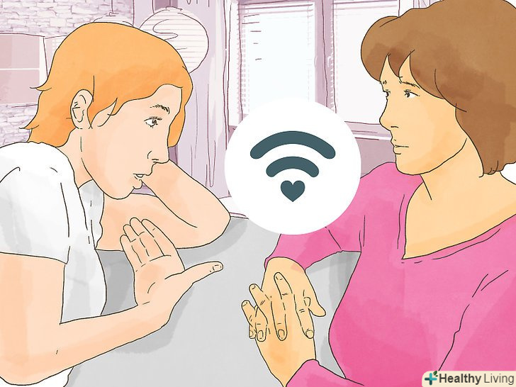 Скажіть іншій людині, що переживаєте за нього. Обеззбройте його, щиро поділившись своїми почуттями. Може бути непросто говорити комусь під час сварки, що ви любите його або що він вам небайдужий, але це може допомогти розрядити обстановку. [5]- Наприклад, можна сказати: "я люблю тебе і не хочу, щоб ми злилися один на одного. Давай не будемо зараз сваритися".