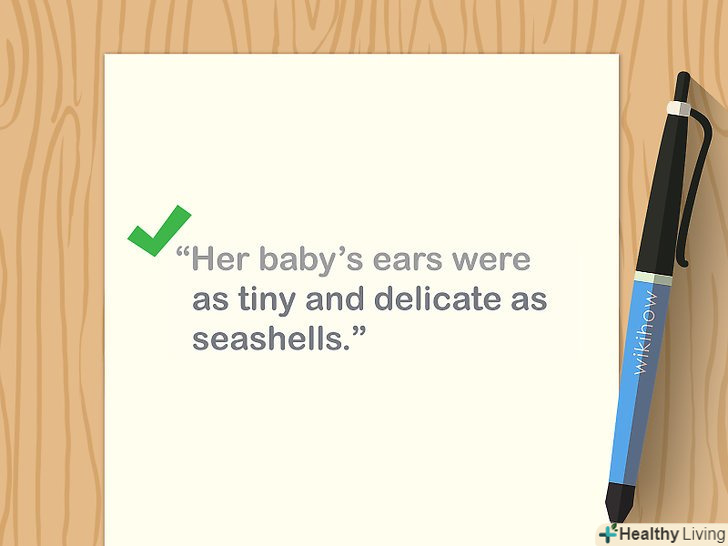 наприклад:»вушка дитини були крихітними і ніжними немов морські черепашки".Метафора: використовуйте слова або фрази з таким предметом, дією або істотою, до якого вони незастосовні в буквальному сенсі.
