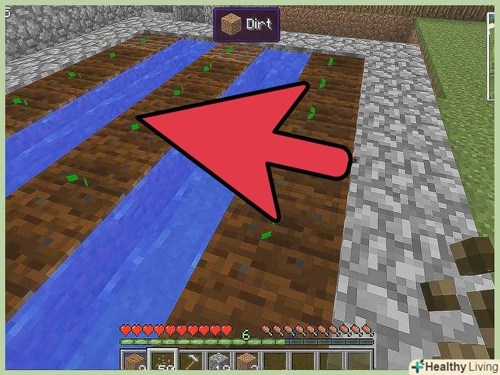 Посадіть зерна.- Візьміть в руку мотику, натисніть правою кнопкою на землі, куди ви садите зерна. Вийде взрытая грунт.