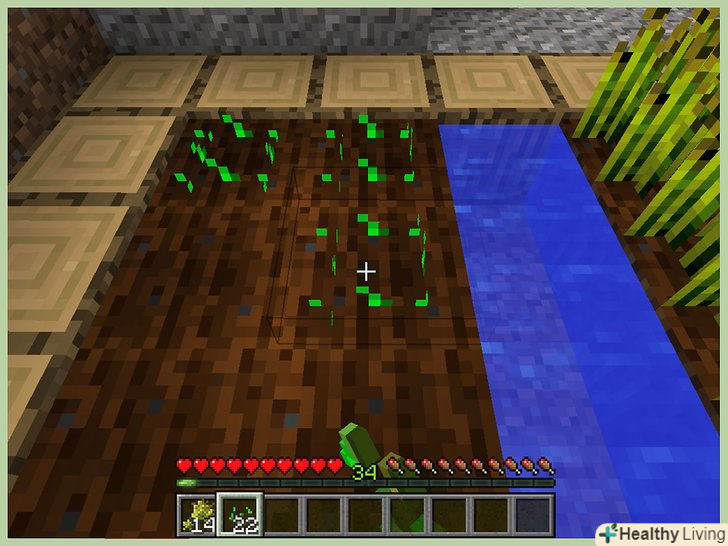 Зробіть грядку поруч з водою.посадіть картоплю і моркву, натиснувши по грядці правою кнопкою миші.