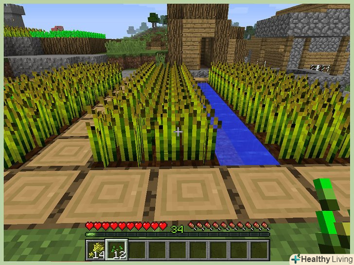 Розбийте кілька блоків високої трави.з неї іноді випадають зерна. Підберіть їх.