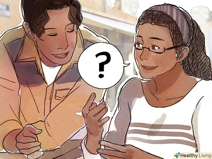 Задавайте питання. після початку бесіди задайте кілька питань. Спочатку вам буде непросто підтримувати розмову. Корисна порада: більшості людей подобається говорити про себе. Задавайте питання, щоб хлопець продовжував говорити. Також це дозволить вам дізнатися про нього щось нове. [3]- Спочатку можна поговорити про Ваші спільні справи. Наприклад: "тобі подобається цей предмет?"або" ти збираєшся грати за збірну школи з футболу в цьому році?"