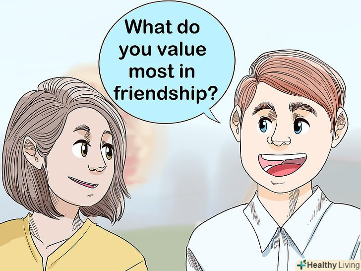 З'ясуйте, чи збігаються ваші цінності, інтереси і бажання. у багатьох людей є "камені спотикання", які вказують на те, що вони абсолютно не можуть зустрічатися з тими, з ким у них різні погляди на шлюб, особисті інтереси і багато іншого. Запитайте того, з ким у вас призначено побачення, про його моральні цінності, захоплення і плани на майбутнє. Це з великою ймовірністю допоможе визначити вашу сумісність і виявити можливі проблеми. [6]- Наприклад, можна запитати: "Що ти цінуєш в Дружбі найбільше?"або" про що не варто жартувати?»
