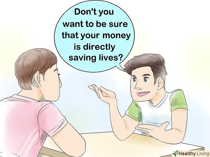 Дозвольте опоненту стати на час героєм або жертвою. Люди люблять сприймати себе, як головного героя своєї життєвої історії. Нехай ваш опонент так і думає, А ви дійте дуже акуратно і підштовхніть його до зміни своєї думки, обговорюючи деталі проблеми.- Наприклад: "я знаю, що ви дійсно дуже хочете допомагати людям. Ви один з найщедріших людей, яких я знаю. Але якщо б ви дійсно хотіли допомогти, ви б не робили пожертвування в благодійні центри, які можуть зловживати вашими коштами. Хіба ви не хочете бути впевненими в тому, що ваші гроші безпосередньо рятують чиєсь життя?»