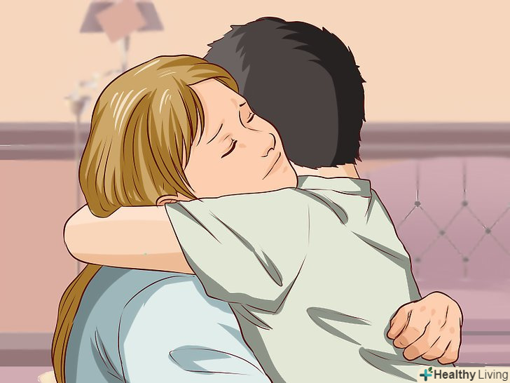 Подбайте про фізичний комфорт вашого друга. у дотиків є своя мова, і він може пояснити людині, що ви поруч і що з вами він в безпеці. Але спочатку запитайте у друга, чи хоче він цього, тому що не всі люди добре сприймають дотики. [3]- Обійми важливі для душевного "зцілення". Якщо ваш друг засмучений, особливо якщо він емоційно пригнічений, обійміть його або доторкніться до його руки. Цим ви покажете, що ви поруч з ним і він в безпеці.