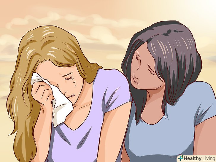 Знайте, коли Вашому другу слід запропонувати звернутися за допомогою до фахівця. іноді людина не може впоратися з емоціями самостійно. В цьому випадку, ви, як люблячий друг, можете порадити вашому близькому звернутися за допомогою до професіонала. В цьому немає нічого поганого, особливо якщо мова йде про розлучення, смерті близького або про хвороби.- Зверніть увагу на ознаки депресії: труднощі з концентрацією уваги або запам'ятовуванням деталей, складності з прийняттям рішень, нестача сил, безсоння або підвищена сонливість, сумні або тривожні думки, фізичний біль або проблеми зі здоров'ям, які не піддаються лікуванню, суїцидальні думки і розмови про самогубство, відчуття безпорадності і марності. [10]
