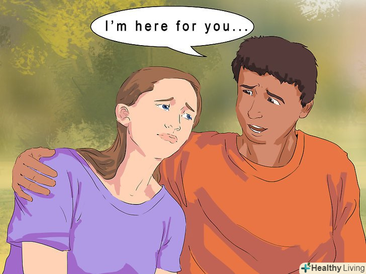 Підтримуйте зв'язок з людиною. більшості людей важко звернутися до когось, коли їм потрібна допомога, особливо емоційна. Тому не забувайте час від часу зв'язуватися з цією людиною. Важливо бути доступним, коли і якщо йому знадобиться допомога. [17]