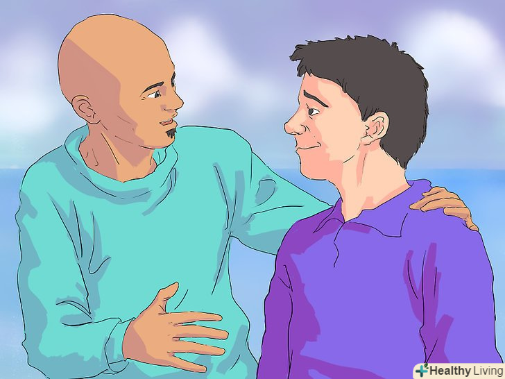 Запропонуйте звернутися до психолога. якщо ваш друг переживає дійсно складні часи, не зайвим буде запитати, чи не думав він про те, щоб записатися на прийом до психолога. На жаль, похід до фахівця, в силу забобонів, може датися нелегко, однак якщо у вашого друга деякий час були проблеми, можливо, йому варто поговорити з професіоналом. [15]- Звичайно ж, забобони щодо походу до психолога несправедливі. Можливо, вам навіть доведеться переконати друга, що абсолютно нормально поговорити з фахівцем. Допоможіть йому побороти упередження-дайте одному зрозуміти, що ви як і раніше будете бачити в ньому ту ж людину, навіть якщо йому потрібна невелика допомога.