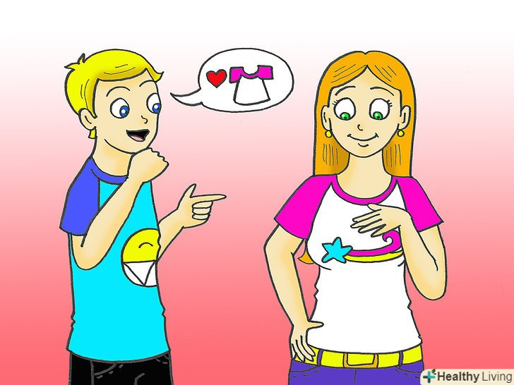 Зробіть дівчині комплімент щодо того, що на ній надіто. Не в сексуальному сенсі, а в тому руслі, що змушує її відчувати себе важливою. І дівчині сподобається, що ви дивитеся на неї (тобто, фраза «Мені подобається ця сорочка; вона нагадує мені про той час, коли ми разом ходили на концерт» замість «мені подобається ця сорочка; вона насправді виділяє твої сиськи».).