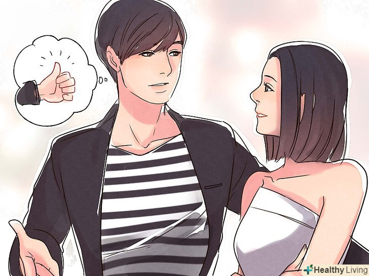 Намагайтеся, щоб ваші жести завжди були позитивними. Тепер, коли чоловік побачив ваш погляд і білосніжний перли на шиї, прийшов час використовувати мову тіла, щоб показати обопільний інтерес.- Ведіть себе впевнено. Не можна сутулитися, дивитися під ноги або схрещувати руки на грудях. Уникайте дій, які говорять про ваше хвилювання: не можна грати з волоссям або гризти нігті. Замість цього дивіться співрозмовнику в обличчя і стежте за тим, щоб руки залишалися вільними. Так ви продемонструєте, що ви відкрита і активна людина.