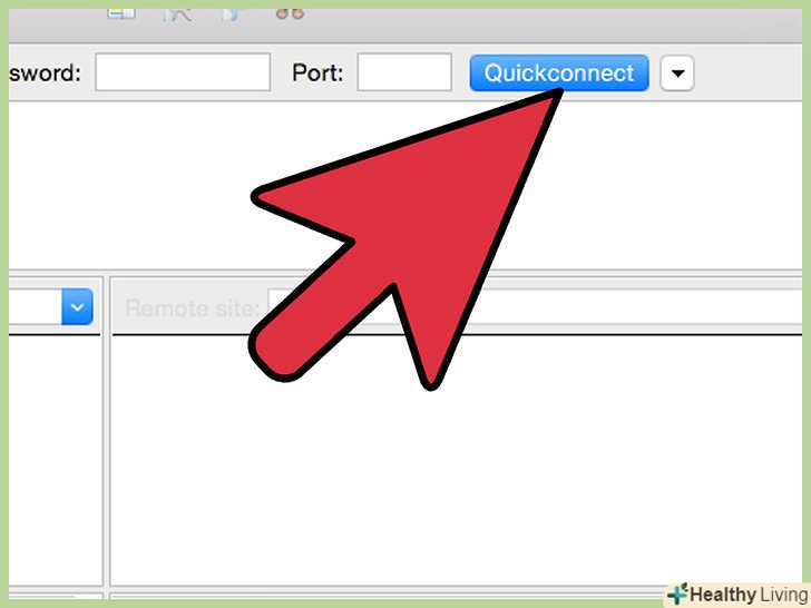 Відкрийте FileZilla. У верхній частині програми ви побачите поля, "Host", "Username", "Password"і " Port". В поле хост, введіть IP-адресу сервера, додавши sftp://; в поле "Username", введіть "root"; в поле "Password", введіть пароль, створений при реєстрації; в поле "Port", введіть порт, скопійований на вкладці SSH.