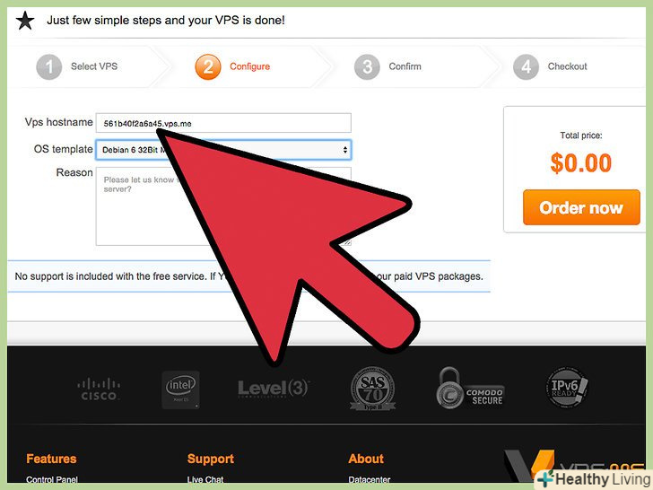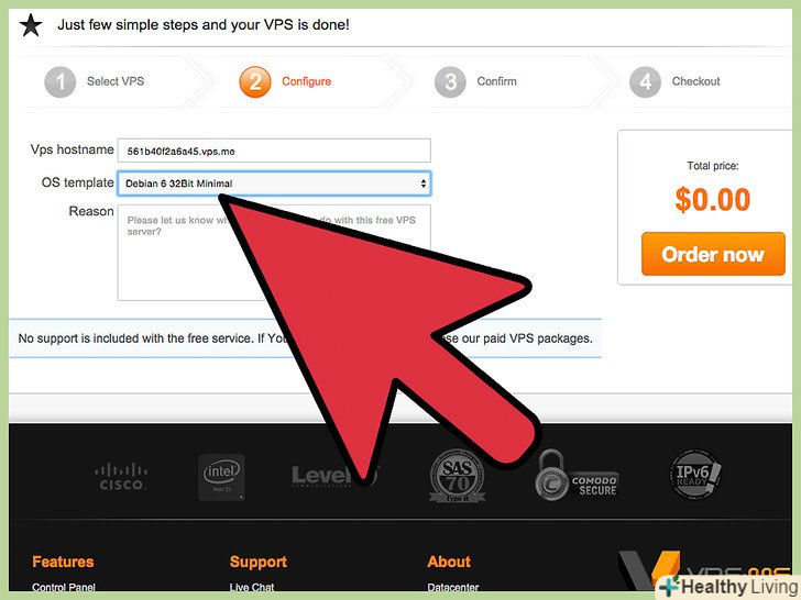 Виберіть безкоштовну версію. відкрийте домашню сторінку vps.me. виберіть опцію зліва, Package 1. Це безкоштовний варіант. Клацніть на кнопку "Order".