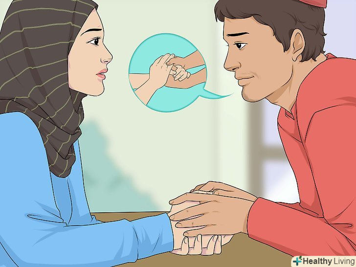 Втішайте за допомогою фізичного контакту. легкі дотики творять чудеса. Вони вивільняють гормон під назвою окситоцин. Цей гормон підвищує почуття взаємозв'язку, прихильності, довіри і близькості. [8] якщо ви тримаєтеся за руки, погладьте великим пальцем її пальці або тильну сторону долоні. Можна покласти руку на плече або в область лопаток – ефект буде той же.- Тримаючись за руки можна чудовим чином зняти стрес. Одне це просте дію дає відчуття довіри і безпеки, а також знижує рівень кортизолу ("гормону стресу"). [9]