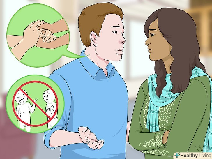 Підтримуйте, а не проявляйте поблажливість. неважливо, згодні ви з її аргументами чи ні. Просто постарайтеся переконати її в тому, що готові бути поруч. Відведіть її в відокремлене місце і скажіть, що якщо їй хочеться поплакати, це цілком нормально. Скажіть, що Ви на її боці.- "я знаю, тобі жахливо важко. Мені так шкода."
