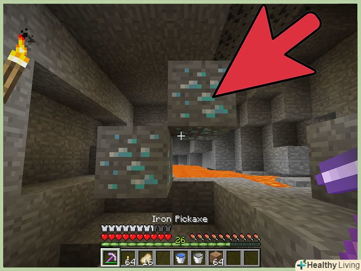 Перед тим, як зібрати алмаз, викопайте всі блоки навколо нього. поруч, наприклад під ним, може бути лава. Якщо ви спробуєте зібрати його, він впаде в лаву і згорить. Тому будьте обережні при їх зборі. Адже алмази - дуже цінна копалина!- Якщо вам зустрінеться лава, закрийте її кам'яними блоками. Тоді вона вам не зашкодить.