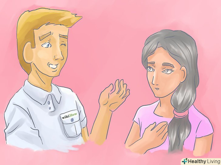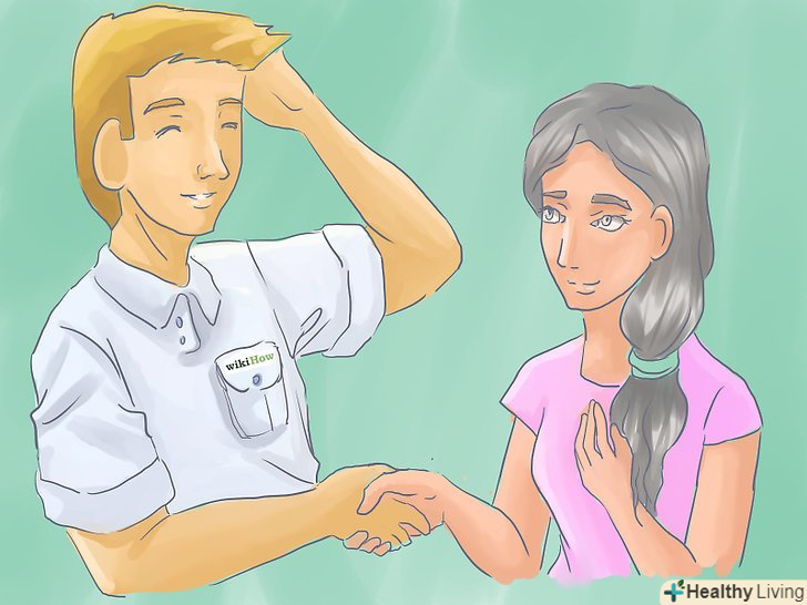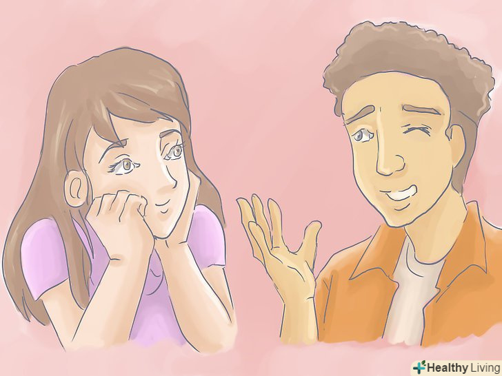 Скажіть жарт, щоб розрядити обстановку. Якщо ви все ще відчуваєте боязкість і сором, спробуйте пожартувати, щоб заспокоїтися. Ви можете сказати: "ситуація була менш напружена, поки я не сказав зайвого». Покажіть, що ви не ставитеся до себе занадто серйозно. Завдяки цьому дівчина буде відчувати себе більш розслаблено.- Якщо по своїй натурі ви не веселун, не переживайте. Спробуйте пожартувати. Завдяки цьому ви покажете себе з кращого боку і розрядите обстановку.