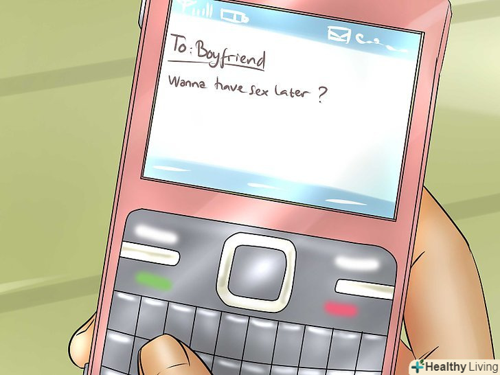 Можна написати хлопцеві повідомлення або сказати по телефону про те, що хочете зайнятися сексом. якщо ви занадто хвилюєтеся і не можете сказати йому про це особисто або просто хочете заздалегідь розпланувати свій перший секс з ним, хороший варіант – написати йому смс або зателефонувати. [6]- Якщо ви вирішили написати йому смс, можете прямо висловити свої думки, наприклад: "Привіт, хочеш як-небудь зайнятися сексом?». Звичайно, таке повідомлення приверне його увагу, але він, цілком можливо, може прийняти ваше смс за жарт. Це про всяк випадок, якщо він скаже "ні".