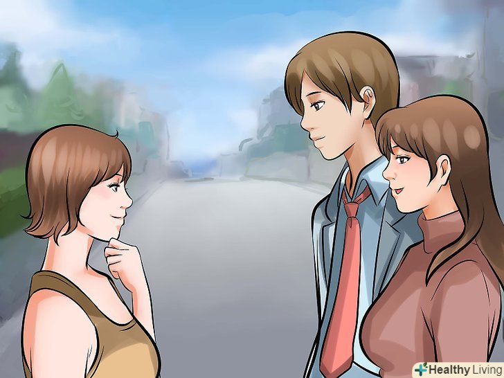 Звертайте увагу на мову тіла. якщо ви перебуваєте на вечірці або на іншій громадській події, переконайтеся, що ваша мова тіла говорить про те, що ви відкриті для спілкування. Підтримуйте з людьми зоровий контакт, кивніть їм головою і дивіться прямо перед собою, а не на свої ноги або підлогу. Виглядаєте при цьому щасливими і готовими говорити з іншими людьми так, щоб у них виникло бажання підійти і поспілкуватися з вами.- Не схрещуйте руки, не хмуріться і не стійте в кутку. Ці жести говорять про те, що ви хочете, щоб вас залишили в спокої. Вгадайте, що піде за цим? Люди залишать вас у спокої.
