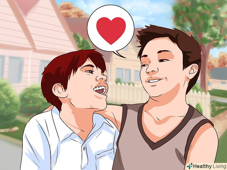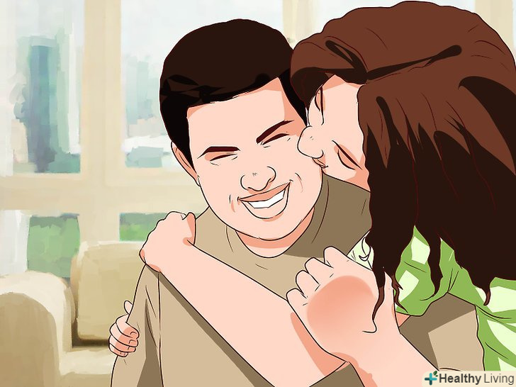 Цілуйте брата. у багатьох культурах досить поширене цілуватися з різних причин. Іноді досить цмокнути людини в щоку, а іноді варто поцілувати в губи. Або навіть в верхівку або лоб. Будь поцілунок буде простим знаком, що демонструє вашу готовність проявляти емоції. [6]