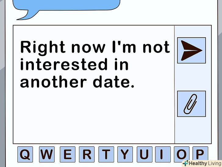 Не ігноруйте людину. розлучаючись з людиною в листуванні, важливо проявити зрілість і поставитися до його почуттів серйозно. Якщо він покличе вас на друге побачення за допомогою повідомлення, дайте відповідь прямо. Можливо, вам здасться привабливим варіантом видалити повідомлення і забути про нього, проте так ви ризикуєте поранити почуття співрозмовника. [9]