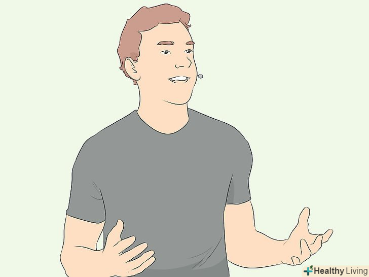Рухайтеся. вимовляючи мову, стійте прямо, з хорошою поставою, але час від часу рухайтеся. Випряміть спину, відведіть плечі назад, не сутультесь, руки повинні бути вільні, ви можете навіть при необхідності жестикулювати. Якщо вам не обов'язково стояти за трибуною, можете іноді повільно ходити з боку в бік, щоб показати аудиторії, наскільки впевнено і комфортно ви себе почуваєте.