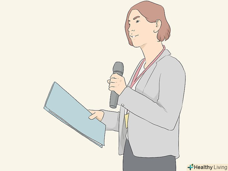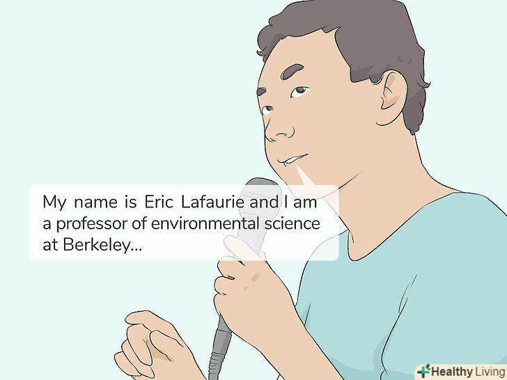 Поділіться чимось про себе. після того як ви скажете своє ім'я та прізвище, розкажіть, яку мову ви збираєтеся вимовити і чому, постарайтеся правильно себе піднести. Те, що вам потрібно сказати аудиторії, залежить від характеру вашої мови і від події, з приводу якої Ви виступаєте. Якщо ви збираєтеся читати лекцію про важливість правильного харчування, обов'язково скажіть, яке відношення ви до цього маєте. Наприклад, скажіть, Хто ви-вчений, кухар або еколог. Якщо ви розповідаєте про виховання і розвиток дитини, скажіть, що ви дитячий психолог.- Ви можете надати аудиторії будь-яку корисну інформацію про себе, яка має відношення до вашого виступу. Ви можете коротко перерахувати якісь свої професійні заслуги. Наприклад, можна сказати: "Мене звуть [ім'я] [прізвище], Я професор екологічних наук. Я проводив дослідження в тропічних лісах Амазонки і після цього зрозумів, наскільки важливо шукати нові способи для захисту нашої планети".