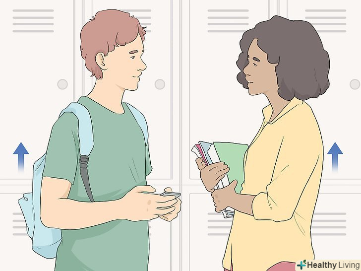 Встановіть зоровий контакт. зоровий контакт означає, що ваша увага спрямована на співрозмовника. Погляд в очі-один із способів взаємодії з людиною. Так ви демонструєте йому свою зацікавленість. Встановивши зоровий контакт, ви стаєте більш відкритим для свого співрозмовника. [1]- Якщо ви відчуваєте себе дуже ніяково, дивлячись комусь в очі, спробуйте дивитися співрозмовнику між бровами-можливо, він не помітить різниці.