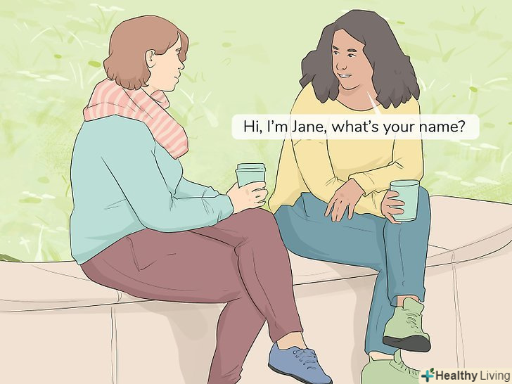 Скажіть один одному свої імена. якщо привітання має бути формальним, можете сказати: «Здрастуйте, я [ім'я] [прізвище]». Якщо подання неофіційне, скажіть просто: "Привіт, я [ім'я]. Відразу після того, як ви повідомили своє ім'я, дізнайтеся ім'я свого нового знайомого, Скажіть: «а як тебе звуть?». Говоріть в привітних тонах. Як тільки ви дізнаєтеся ім'я вашого нового знайомого, повторіть його, сказавши: «дуже приємно познайомитися, [його ім'я]» або «приємно зустрітися з тобою, [її ім'я]».- Важливо повторити ім'я свого знайомого, щоб краще його запам'ятати, до того ж, це додасть вашому знайомству якусь близькість.