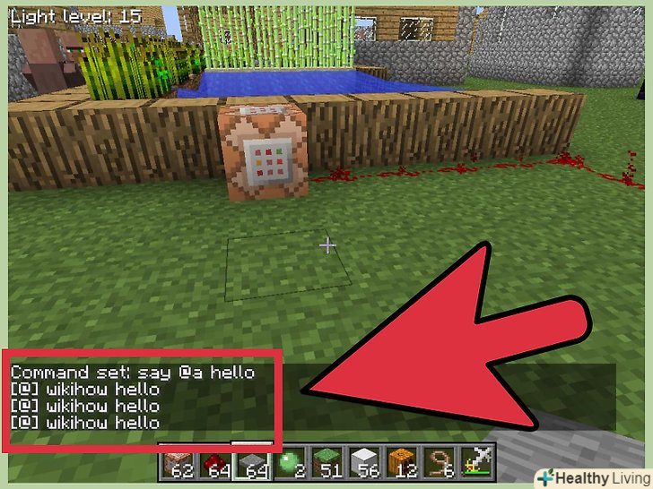 Відкрийте інтерфейс командного блоку. підійдіть до командного блоку і клацніть по ньому правою кнопкою миші. Відкриється спливаюче вікно з текстовим полем.- Якщо нічого не сталося, командні блоки, швидше за все, заблоковані на многопользовательском сервері. Користувач з доступом до файлу server.properties повинен відкрити цей файл і задати опції» enable-command-block "параметр" true«, а опції» op-permission-level «параметр» 2 " (або вище).