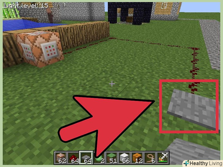 - Навіть якщо командний блок не підключений до червоного каменю, він спрацює в тому випадку, якщо сусідній блок має рівень сигналу від червоного каменю 2 або більше.