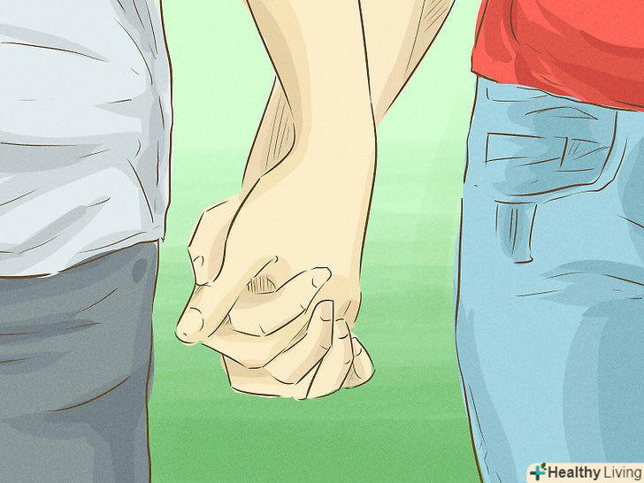 Оточіть дівчину турботою. якщо ви дійсно любите свою дівчину, то показуйте свої почуття через дотики. Тримайтеся за руки у всіх на виду або покладіть руку навколо плеча, цілуйте дівчину в щоку і обіймайте. Наодинці можна дозволити собі більше близькості-цілуйте дівчині шию, пестіть спину або стегна, якщо такі дії бажані. Справжній джентльмен не поспішає і чекає, коли дівчина буде готова не обмежуватися тільки поцілунками.- Справжні джентльмени пишаються, коли інші бачать їх разом з дівчиною, люблять надавати їй знаки увагу навіть у присутності друзів. Не припиняйте триматися за руки, коли проводите час з друзями. При цьому джентльмен не стане віддаватися зайвим пестощів з дівчиною на публіці.