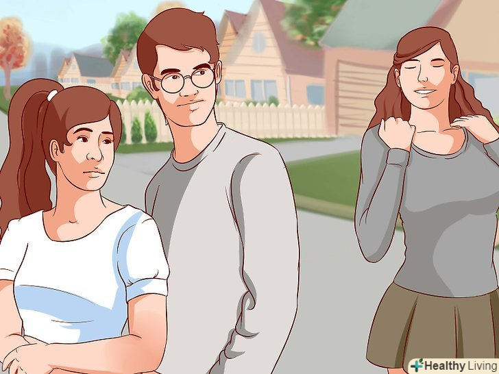 Покажіть, що вам небайдужа інша дівчина. якщо дівчина повірить, що у вас вже є подруга або ви зацікавлені в іншій дівчині, то вона не помітить ваших почуттів. Якщо проявити або висловити симпатію до іншої дівчини, то ви ефективно приховаєте свої почуття. Недбало скажіть своєму другові, що Вам подобається інша дівчина, коли ви будете в межах чутності дівчини, в яку ви закохані. Так ви переконаєте її, що не зацікавлені в ній.- Не потрібно зустрічатися з іншою дівчиною, щоб просто ввести в оману ту, яка Вам подобається. Так ви можете поранити почуття третьої особи. [4]