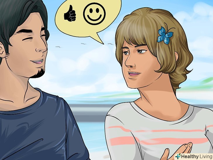 Зробіть йому комплімент. хлопцям, як і дівчатам, це теж подобається. За допомогою оригінального компліменту ви досягнете двох речей: дуже тонко дасте йому зрозуміти, що він вам подобається, що викличе у нього теплі почуття, і ви сподобаєтеся йому ще більше. Одним пострілом два зайця.- Не знаєте, що сказати? Скажіть, що у нього мила посмішка або хороша стрижка. Якщо він грає на музичному інструменті, похваліть його музичні здібності. Якщо він є членом спортивної команди, скажіть йому, що ви спостерігали за грою і були вражені тим, наскільки добре він грав.