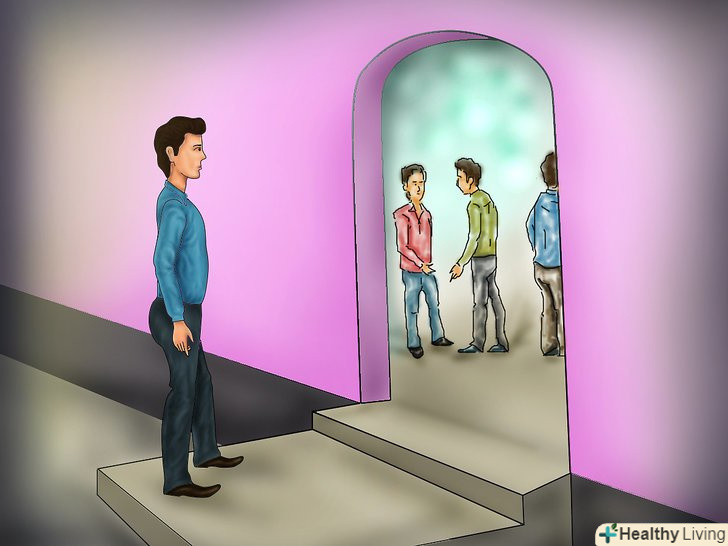 Коли ви прибудете на вечірку, Зупиніться в дверях на мить і озирніться. це дасть вам час зібратися з духом. Подивіться, може бути ви знаєте когось із присутніх і прямуйте в їх бік.