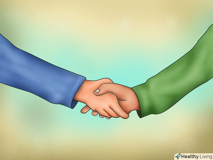 Коли вас представляють людям, простягніть руку для міцного рукостискання (бажано, щоб руки були сухими). Якщо ви вирішите потиснути руку при знайомстві, то ваше рукостискання не повинно бути занадто млявим, або ж занадто сильним. Потисніть руку співрозмовника пару раз, вітаючи його при цьому. Нікому не буде приємно, якщо у вас вологі долоні, або якщо рукостискання триває нескінченно довго. Важливо справити хороше враження з самого початку.