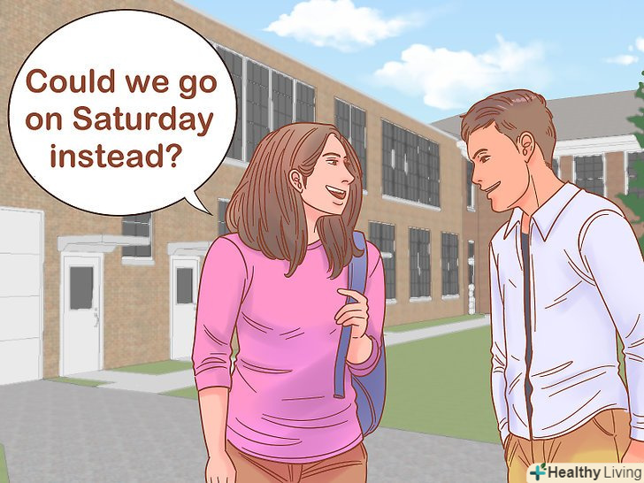 - Не бійтеся перенести дату, якщо у вас щось не виходить. Якщо ви хочете показати йому свій непідробний інтерес, Запропонуйте альтернативу. Скажіть: "я б з радістю пішла в кіно з тобою, але в п'ятницю ввечері я йду на день народження подруги. Може, сходимо в суботу?"