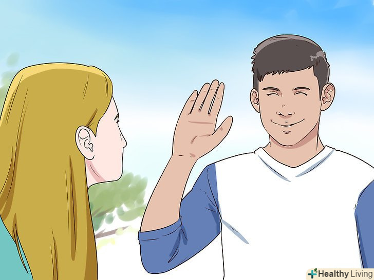 Він злегка торкається вас? зацікавлена в вас людина може торкатися вашої руки або долоні під час спілкування або доторкатися до вашої попереку, коли йде позаду вас. Дотик-це спосіб наблизитися до вас і продемонструвати інтерес. [5]- Зоровий контакт під час дотику — це хороша ознака того, що ви йому подобаєтеся, особливо якщо він посміхається.