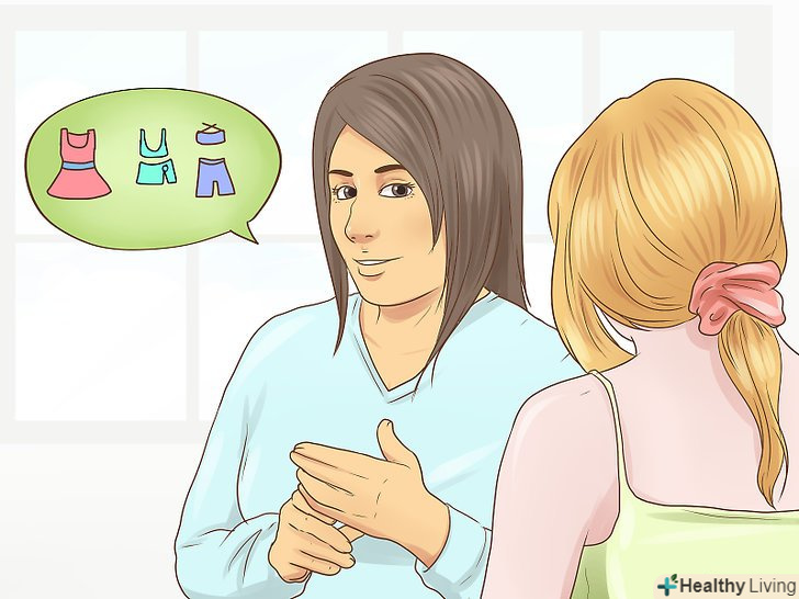 Не підтримуйте негативні висловлювання людини на свою адресу. [19] якщо вам щось не сподобається, людина може почати шукати причини в собі ("я занадто товста для цього плаття"). Не погоджуйтеся з такою думкою. Навіть якщо ви вважаєте, що те, що говорить людина, відповідає дійсності, деякі речі краще тримати при собі. Будьте чесні з собою. Ви ж не хочете зробити людині боляче своїми словами?- У подібних ситуаціях слід відразу ж не погодитися з висловленою думкою. "Ти не товста, просто це плаття не підкреслює твою красу".