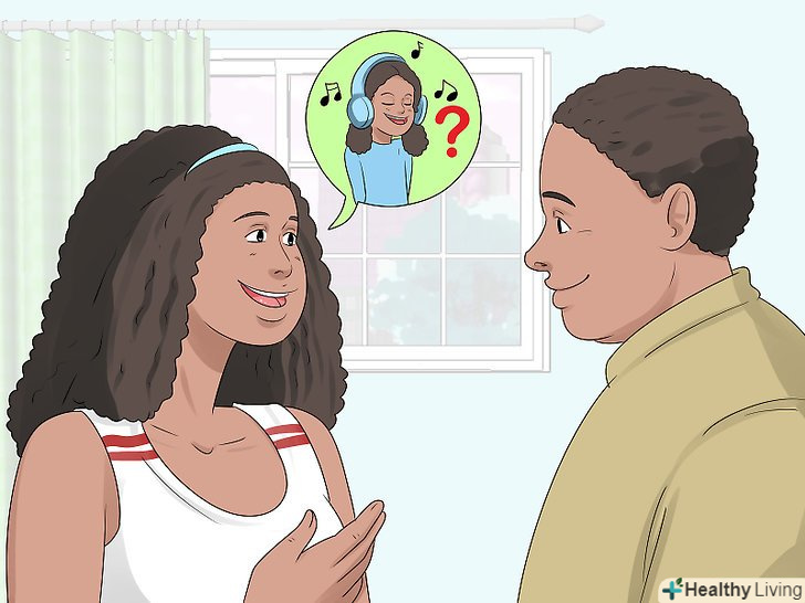 Ведіть бесіду в теплому і ввічливому Тоні. [4] знайдіть місце, де можна сісти і дізнатися один одному краще. Дуже важливо, щоб ваш хлопець брав участь в розмові. Це зведе до мінімуму ризик незручного мовчання і напруги з обох сторін. Будьте ласкаві і ввічливі, незважаючи на те, як буде вести себе дочка. Намагайтеся говорити переважно про неї. Запитуйте про її життя, навчання, роботу або хобі. Утримуйте бесіду на легкій і приємній хвилі в надії, що цього буде достатньо для зняття напруги.- Незважаючи на те, що Вам слід задавати питання, намагайтеся, щоб це не виглядало як допит. Наприклад, якщо їй не дуже цікаво говорити про школу, не потрібно продовжувати цю тему.