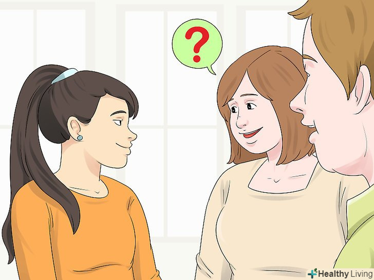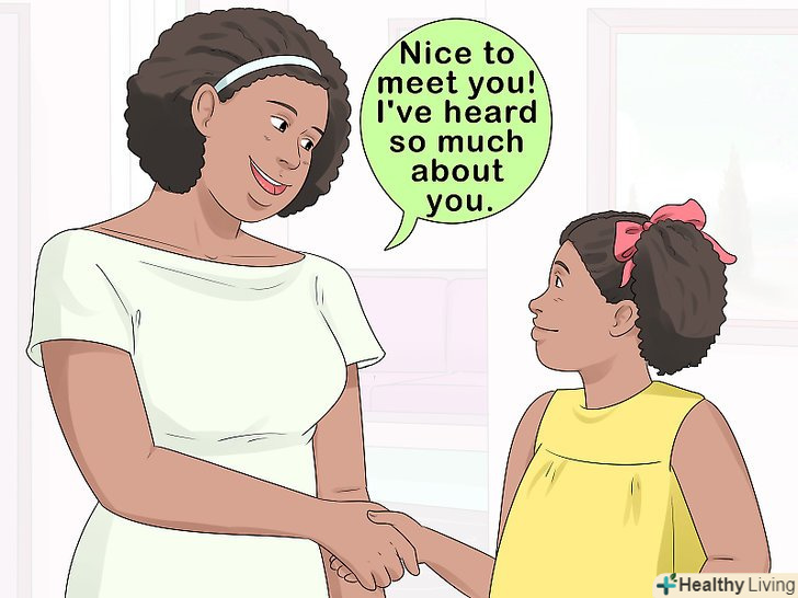 Впевнено Представтеся. перше враження означає Все. Незважаючи на те, що ви можете відчувати хвилювання, швидше за все, дочка вашого хлопця відчуває себе ще більш незатишно. Зберігайте зоровий контакт, тепло посміхайтеся і дружелюбно потисніть руку. Все це допоможе знизити напругу вам обом. Ви можете представитися одним з наступних способів:- "Приємно познайомитися, я стільки чула про тебе".