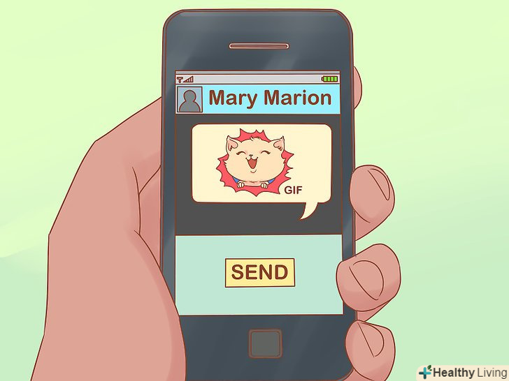 Пошукайте забавні GIF-ки, якими можна буде поділитися, або ж створіть свої власні. файли GIF включають в себе короткі відеоепізоди, і їх повно в Інтернеті, тому ресурси для пошуку таких файлів практично нескінченні. Дуже багато кумедних файлів GIF зустрічається в соціальних мережах, або просто можна задати пошук в Інтернеті по фразі " GIF + тема, яка подобається вашій дівчині» (без лапок) і перевірити результати пошукової видачі.- Якщо у вас нічого не вийде, скачайте який-небудь додаток для генерації мемів і створіть власний забавний GIF-файл!