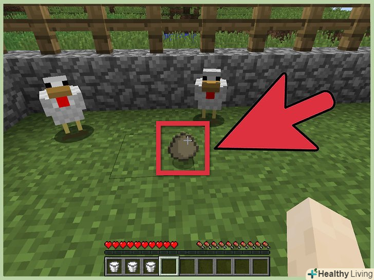 Дістаньте одне куряче яйце. їх несуть кури. Курей можна знайти на рівнинах і в лісі. Курей можна зловити і тримати біля будинку за парканом.